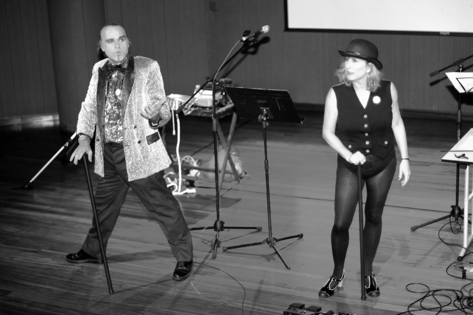 Esperanza y Toni conducen en el interior del teatro una velada que comienza con Inun, un músico que lleva toda una orquesta entre los dedos izquierdos de su pie derecho.
