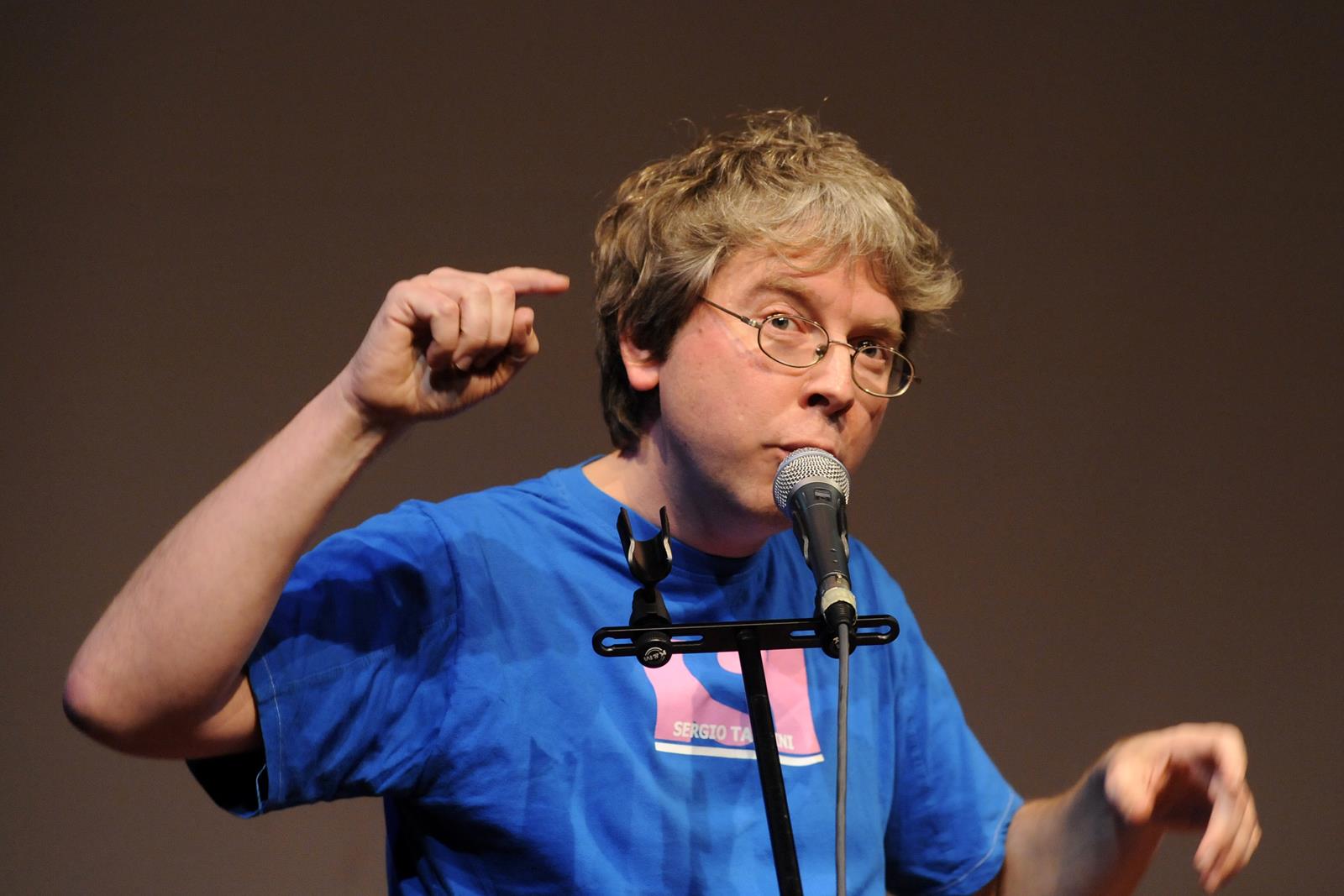 La pareja de presentadores procura mantener la calma de la concurrencia, a la que proporciona un fármaco que provoca alucinaciones como efecto secundario. Y fumigan la platea, y fumigan también a los asistentes, incluso a Cristian Forte, que se presenta en el escenario apoyado en su pequeño piano de músico y poeta dactilar.
